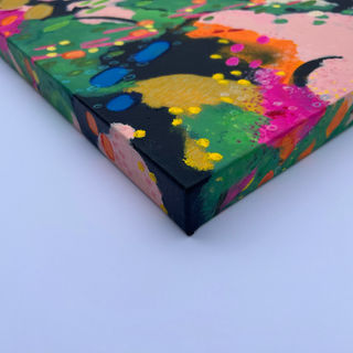 Acrylic, oil pastel, crayon, and color pencil on gallery wrapped canvas, 1.5" depth